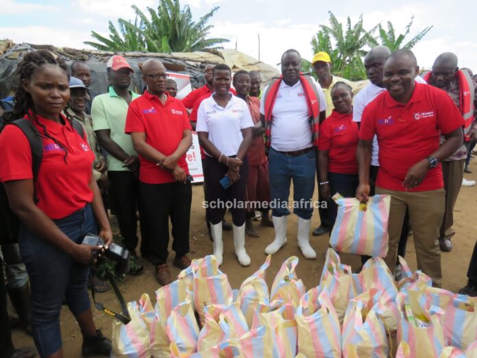 After the First Aid and Safety training, the Kenya Red Cross Society and the MCK fully engaged the journalists in distributing relief food to 70 flood victims from Esiginga village in Bunyala West ward.