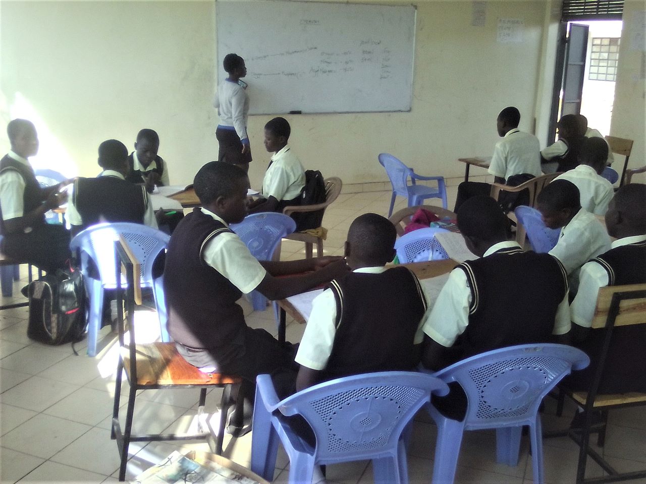 A teacher at Peter Habenga Okondo secondary School in Budalangi, Busia County talking the students through a lesson. PHOTO/Gilbert Ochieng, The Scholar Media Africa.