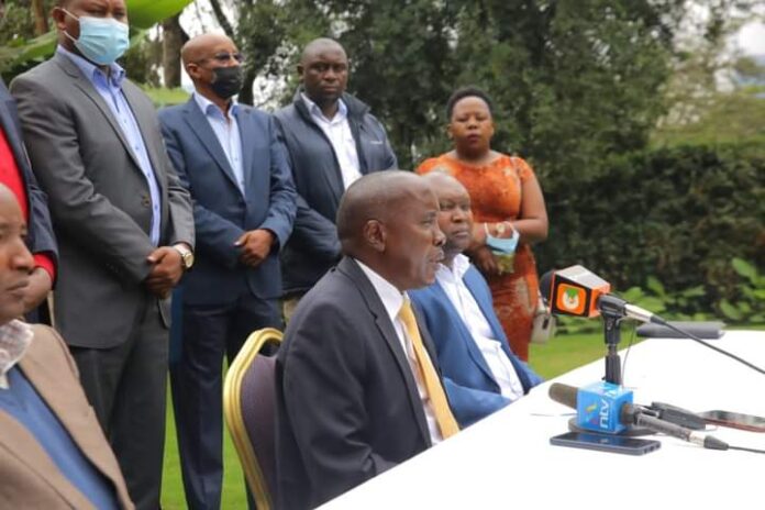 FEATURED PHOTO: Kajiado Governor Joseph Ole Lenku addressing the press during the release of the report by the taskforce he formed to review how the county government can support bars and restaurants recover from the COVID-19 pandemic. PHOTO/Courtesy.